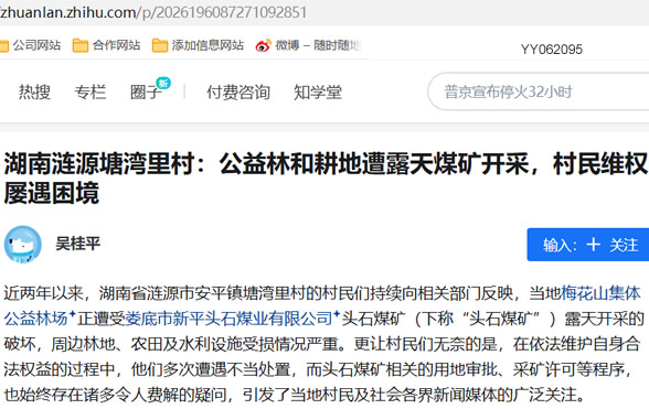 近两年以来,湖南省涟源市安平镇塘湾里村的村民们持续向相关部门反映,当地梅花山集体公益林场正遭受娄底市新平头石煤业有限公司头石煤矿(下称“头石煤矿”)露天开采的破坏,周边林地、农田及水利设施受损情况严重。更让村民们无奈的是,在依法维护自身合法权益的过程中,他们多次遭遇不当处置,而头石煤矿相关的用地审批、采矿许可等程序,也始终存在诸多令人费解的疑问,引发了当地村民及社会各界新闻媒体的广泛关注。